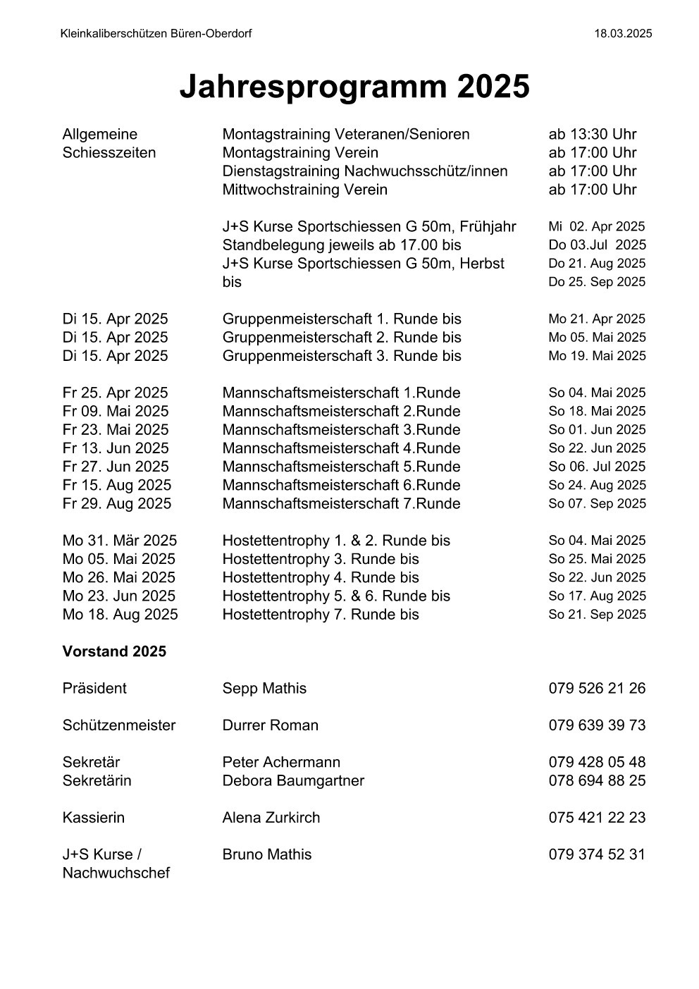 Als nächstes findet der Nidwaldner Kantonalmatch am 19. Juni in Buochs (NW) statt. Es sind alle Mitglieder herzlichst dazu eingeladen.